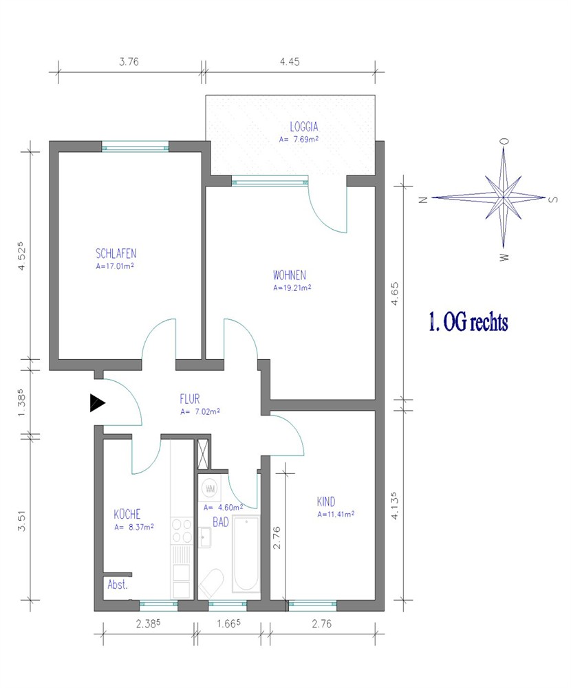 Geräumige 3-Zimmer-Wohnung mit Loggia