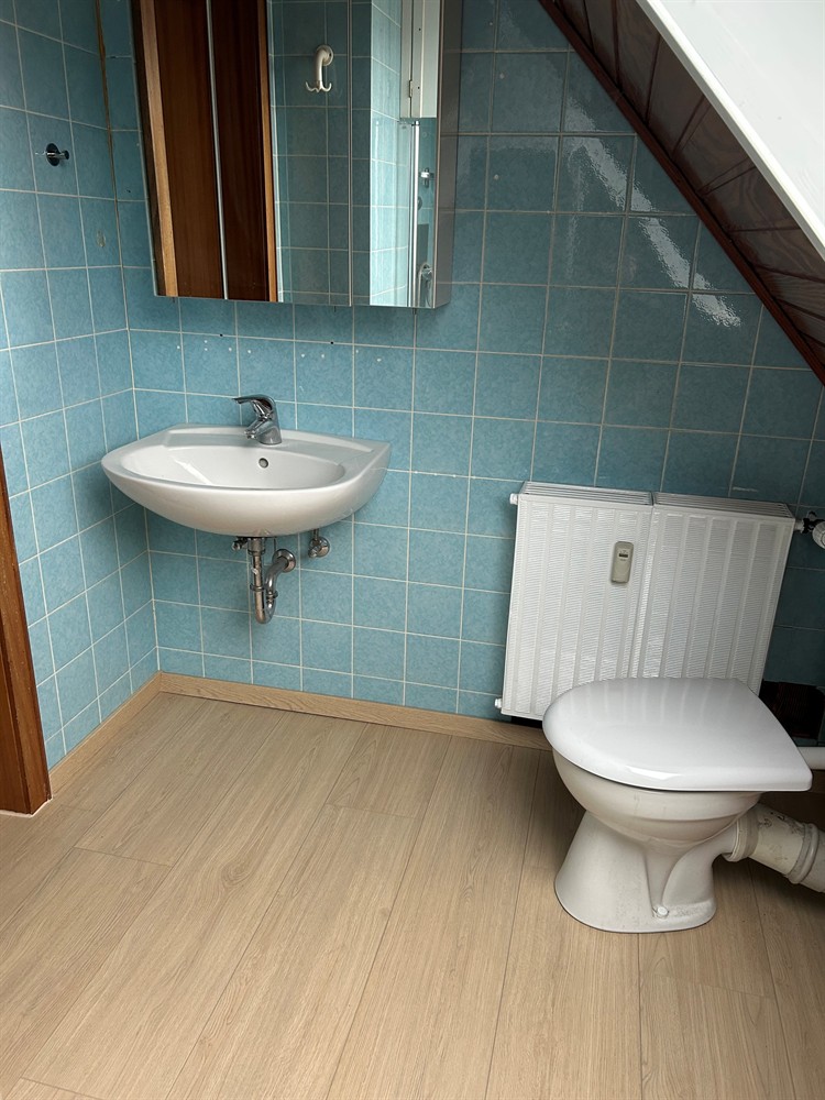 Das Tageslichtbad verfügt über eine Dusche, Waschbecken und WC, angrenzend befindet sich ein kleiner Abstellraum.